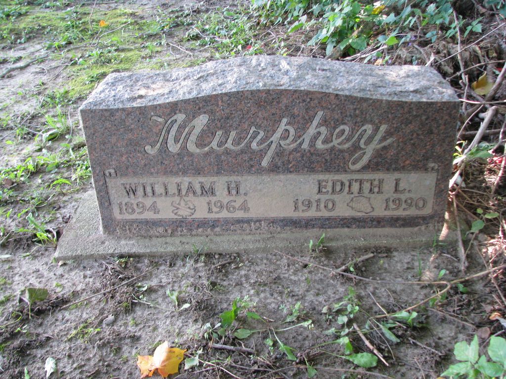 MRM Page - Headstone Inscription: S2, "Murphey/William H./ 1894-1964/ Edith L./ 1910-1990" Grave Location: South side of cemetery, 12th row east of Water St., next to fence Wife of William H. Murphey/Murphy |
