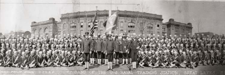 2nd Class and played the clarinet. Enlistment Record, Great Lakes Naval Training Center: August was probably sent from Indianapolis to the Great Lakes Naval Training Station According to the scrapbook created by daughter, Wilma, a picture was taken on 1 Sept 1918 while her and her mother, Mabel, were visiting August Doc1731.pdf Page 10 - (Possibly I74) - Other Images probably taken at Great Lakes Training Station: I29 - I30 - I31 - I32 - I60 - I61 - I97 - - An image of several Sailors in uniform with instruments and the inscription on the back reads: "Kangaroo Court: Third Regement [sic] Band" Doc2091.pdf (I50) - The Third Regiment was located at Camp Dewey S104 page 102 - - An image of a Camp Dewey insignia I125 - Camp Dewey was a part of the Great Lakes Naval Training Center complex S104 page 14 - Hostess Houses - for visitors and sailors to connect - S104 page 179 According to daughter, Wilma, August had played under the baton of John Philip Sousa. Sousa was in charge of the Bands at Great Lakes Naval Training Station from May 1917 until at least the end of WW 1. S53 page 18 - S104 page 151 - So, it is conceivable that August did play for him. 17 Dec 1918 August is discharged from the Navy at the U. S. Naval Training Station, Newport, Newport County, Rhode Island Newport Naval Base: "FIRST WORLD WAR - World War I brought a tremendous increase in naval activity to Newport as thousands of young men arrived for training. Coaster's Harbor Island was unable to accommodate this influx, and land at Coddington Point was added to the Navy's holdings. Almost overnight, the Point was turned into a city of tents and wooden buildings as more than 75,000 recruits passed through Newport. Residents of the city were encouraged to "Adopt a Sailor," opening their homes as temporary lodging for the trainees. As the Navy expanded, what had been the Second Naval District (the Naval Training Station) was combined with the First Naval District in 1919." Newport History - Discharge Document, Sources: S4, S11, S16, S76, US Navy - WW 1, Newspaper Enlistment Notice, S127, S128, Images: I28, I29, I30 I31, I32, I125, |