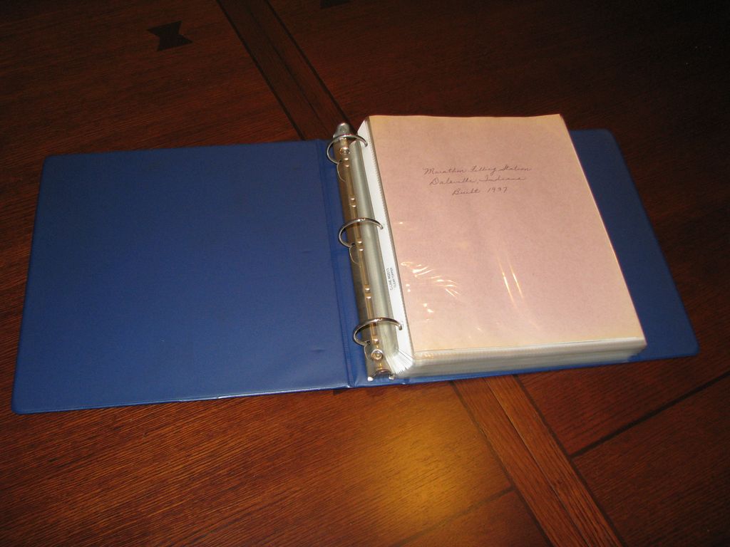 (Acc003217) - - Original Scrapbook - Opened to First Page - RobbHaas Web Page - - This Scrapbook contains 45 plastic 3-ring sleeve pages, open at the top, which contains Newspaper articles, original receipts and documents relating to the Marathon Filling Station which was built in 1937. Repository, Original Material: Daleville Community Library, Daleville, Indiana |