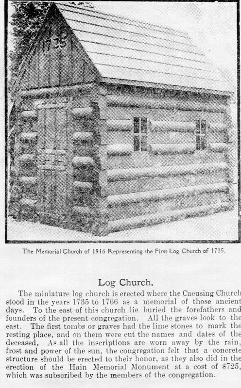 | First mention of Hain's or Cacasi Church was 14 Jan 1739 - "At Cacusi near Oley - Built a log church" - [p 13] |