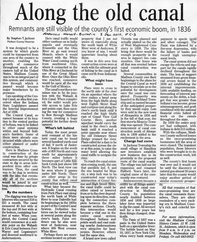 (To Magnify larger image - use CTRL + )S1 "Along the Old Canal" - Anderson [Indiana] Herald-Bulletin, 3 Jan 2010, p C-3