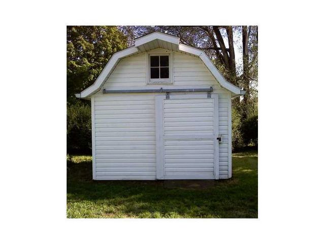 $thStHouse-Nov2012 -- 4th St House, Daleville, Indiana, Nov 2012 - (See: Ph12852-InfoSheet.txt) - Barn/ Storage Shed, front of shed faces north - Shed sitting in Sourthease corner of lot