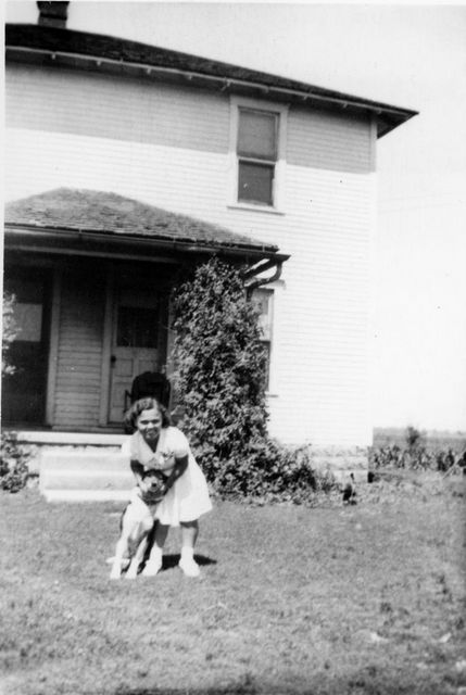 with dog 1270N Farm SE corner of farm house Door into 2nd kitchen abt 1954 Ph9301.tif |