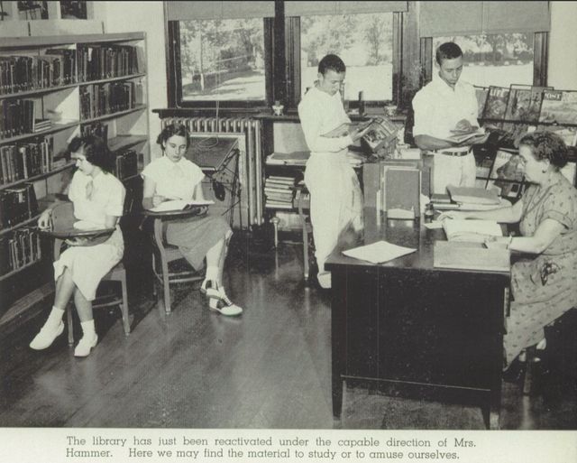 1955 Sheridan H.S. Yearbook Helen in Library 2nd from left |