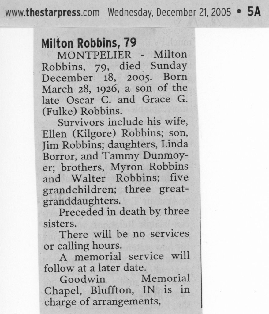 Obituary: "Milton Robbins, 79" The StarPress (Muncie,