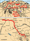 | The line stretched along the western border of Germany from about Kleve on the Dutch frontier to Lorrach near Basle on the Swiss border. The line was known as the "Siegfried Line" by the Americans but the Germans referred to it as the "Western Wall". [S5, p 30] |