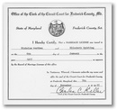 Acc001459/Doc1607.pdf. Extract: Office of the Clerk of the Circuit Court for Frederick County, Md. State of Maryland - Frederick County, Sct. - I Hereby Certify, That a MARRIAGE LICENSE was issued to Nicholas Warthen and Elizabeth Spirling on the 6th day of January in the year 1817, as appears by the record of Marriage Licenses of this office. In Testimony Whereof, I hereunto subscribe my name and affix the seal of the Circuit Court for Frederick County, at Frederick, Maryland, this 7th day of November AD 1983 - (Signed) Charles C Keller, Clerk of the Circuit Court for Frederick County.