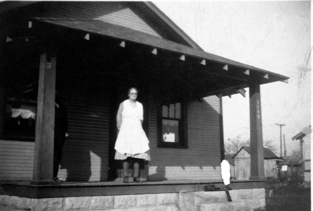 | Della, abt 1925 1217 N. Monroe St. Hartford City, IN (See House # on porch Post) |